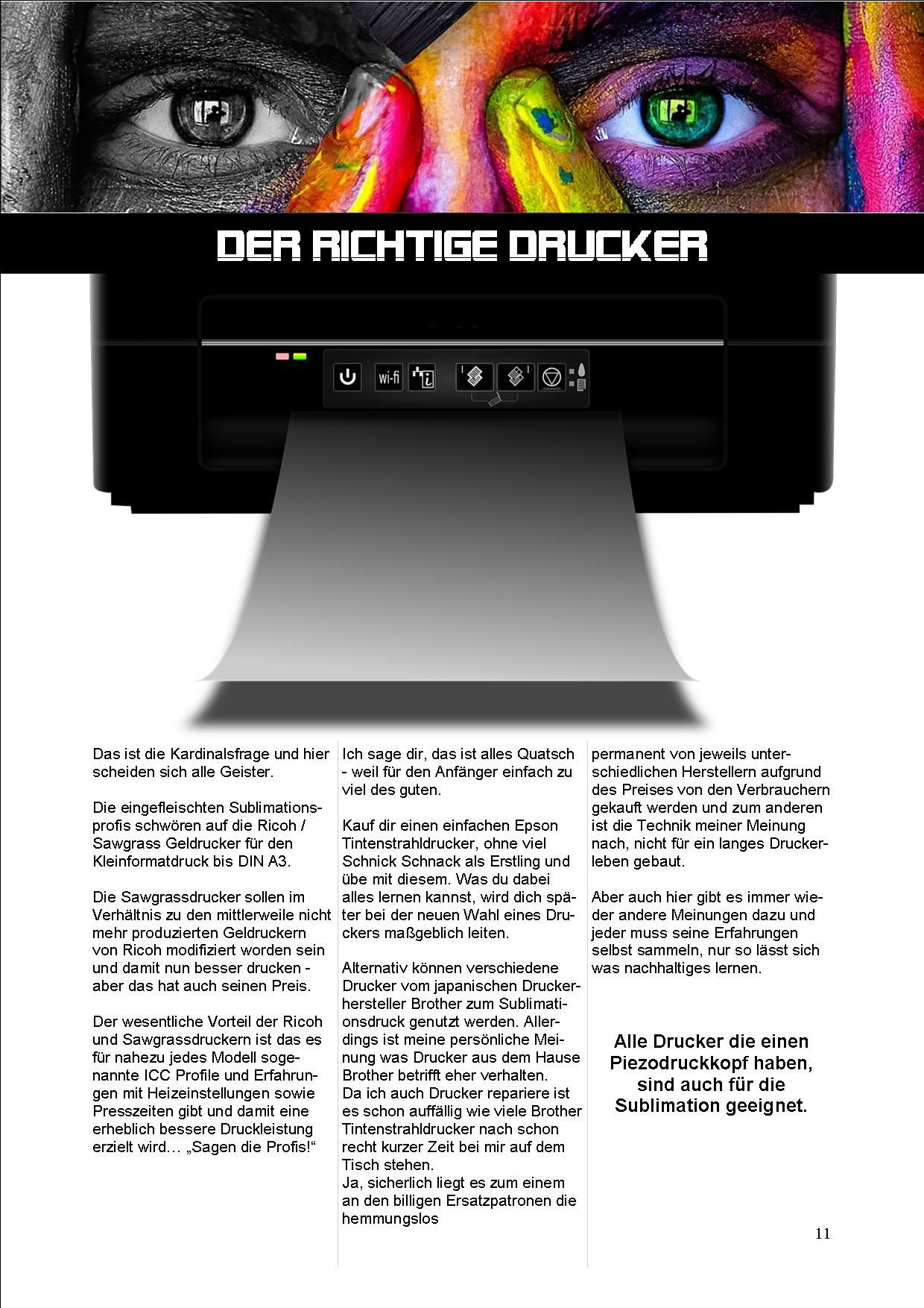Einführungspreis - PDF Download - Dieses 78 seitige Schlaumachbuch richtet sich an Sublimationseinsteiger. Wir führen dich in die Geheimnisse und Grundlagen der Sublimation ein. Wir helfen dir bei der Druckerauswahl, zeigen dir welche Sublimationstinte für welchen Drucker geeignet ist und wie der Drucker in Betrieb genommen wird. Ob ein neuer oder ein gebrauchter Drucker! Hier lernst du mit beiden richtig umzugehen. Auch beantworten wir die genau was ein ICC Profil ist, wofür du es brauchst und wo du das passende für deinen Drucker herbekommst. Welche Software zur Bearbeitung du benötigst und was es noch an Zubehör für die Sublimation gibt. Wir stellen dir die verschiedenen Heißpressen vor und führen dich mit 2 Tutorials an den T-Shirt und Tassendruck ran. Diese Downloaddatei beinhaltet 3 kostenlose Updates. Wenn du das Buch durchhast, kannst du sofort loslegen...