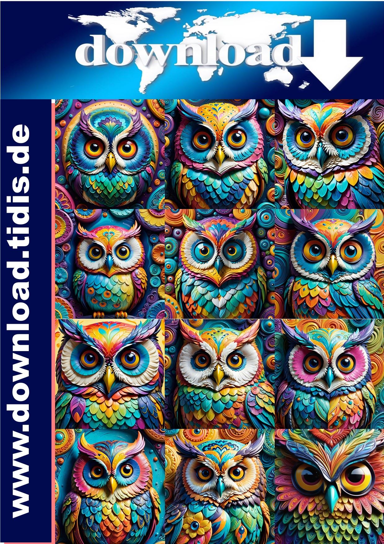 Bunte Eule Teil 3| 10 Bilder plus 2 gratis