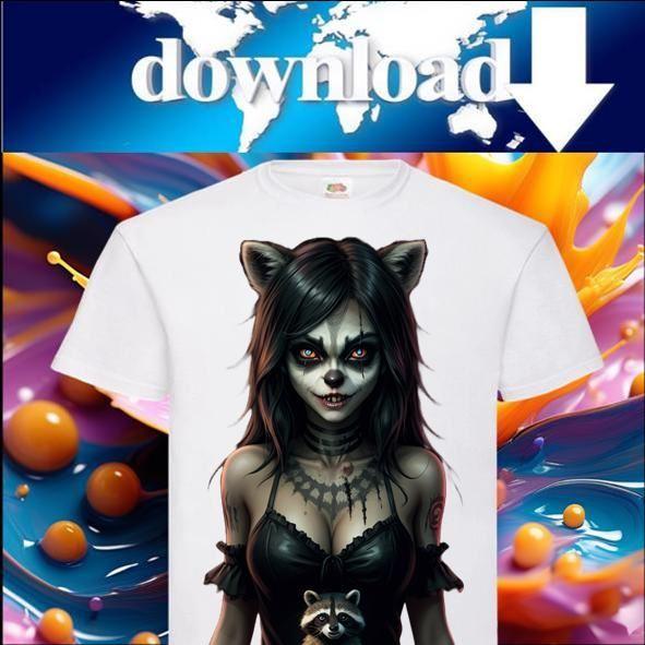 T-Shirtdruckvorlage - Waschbär Dämonin